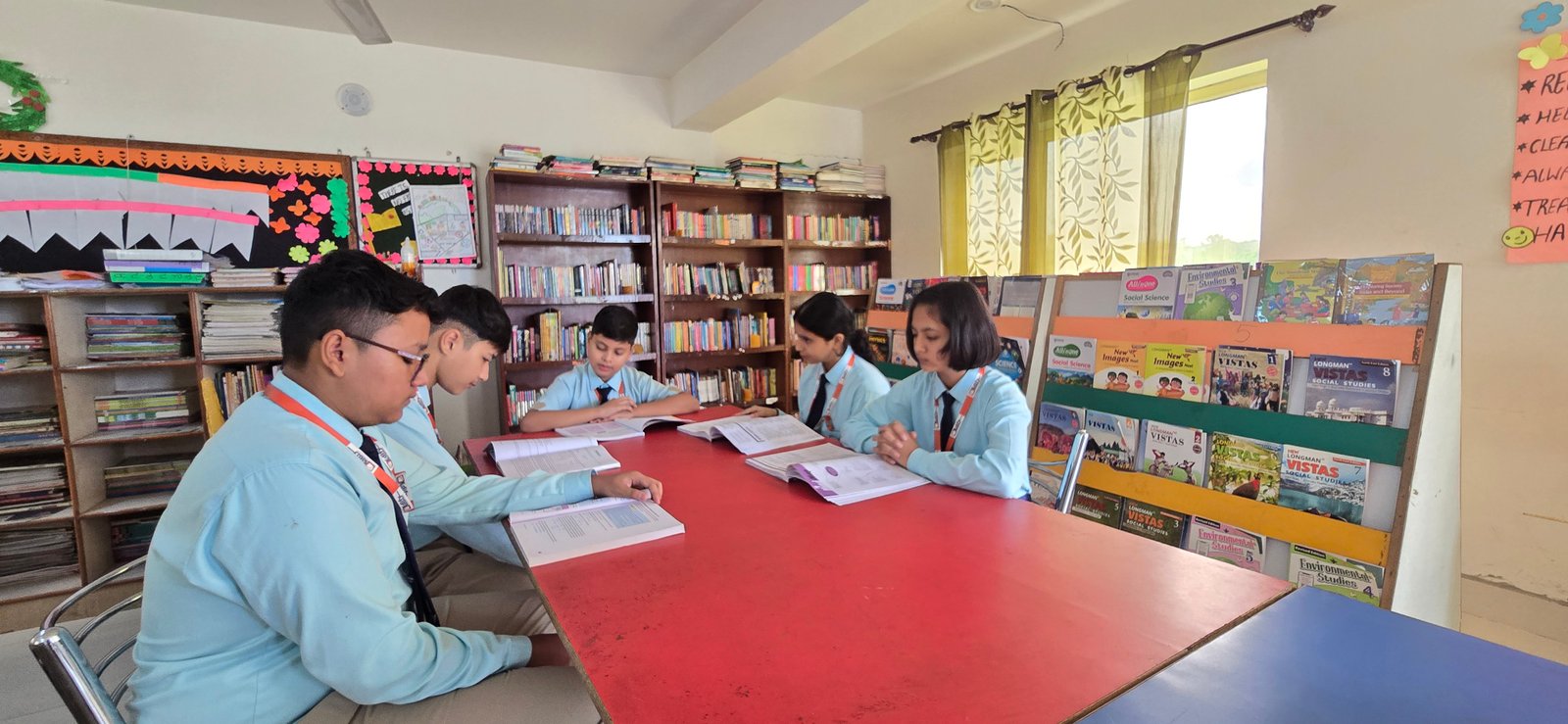 Edify World School has a well  stocked library for pre-primary, primary , middle and high school. The library has specified sections which includes the browsing area, reference section, periodicals and general section.